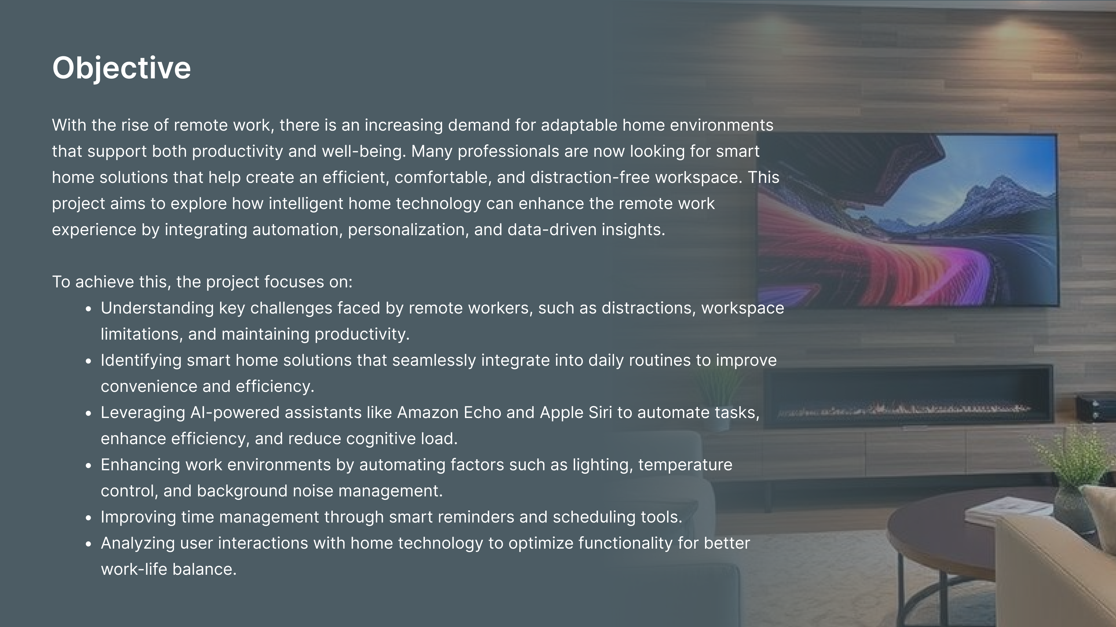 This project examines the role of personal data in smart home technology, emphasizing its impact on productivity and lifestyle. It explores the relationship between personalization and smart systems while addressing the evolution of personal information usage over time. The study also highlights how personal informatics can shape user experiences—both beneficially and manipulatively. Incorporates data-driven smart devices, such as a clock and keyboard, designed to enhance time management and daily efficiency.